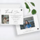Graduação na moda minimalista elegante escrita à mão, escrita à esquerda personalizada pequena obrigado a anotar modelo de cartão com duas fotografias de formando e o seu texto e assinatura personalizados.