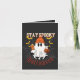 Bold ghost wearing an orange beanie with a jack-o-lantern bucket, set against spiderwebs and red Stay Spooky script—an energetic Halloween design for shirts and hoodies.