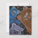 A charming and vibrant illustration featuring three stylized cats in a playful composition. The artwork showcases a bright blue cat, a warm ginger cat, and a soft grey cat peeking from different angles. Decorative hearts and swirling patterns add a magical, storybook feel to the piece. This unique design is perfect for children's decor, greeting cards, note cards, or whimsical art prints.
