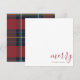 Este cartão de Natal ou de férias com a frase "tudo alegre" em uma fonte de letra moderna é uma maneira fresca de enviar saudações de férias. O padrão xadrez no verso traz alegria extra. Em vermelho e azul. Parte de uma coleção da Parcel Studios.