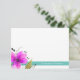 Cartão De Notas Turquesa e Aquarela Floral Rosa Personalizadas
