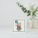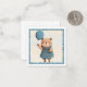 Cartão De Notas Ursa Menina com Vestido Xadrez Azul e Balão