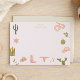 Cartão de nota de papelaria infantil fofo com ilustração desenhada à mão de motivos de tema de vaqueira, incluindo cactos, cobra, chapéu de cowboy, botas de cowboy, etc.