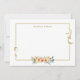 Borda de ouro personalizada com rolhas elegantes embelezadas com flores silvestres folhosas românticas de cor aquosa do bolo, em azul claro, rosa e amarelo. Inclui campo de texto para personalização e padrão complementar de flor silvestre no verso.
