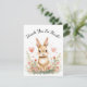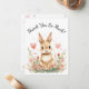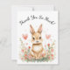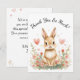 Complete your woodland-themed celebration with this adorable thank you card featuring an adorable bunny surrounded by soft pastel watercolor florals and floating pink hearts.