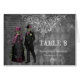 Cartões de números de mesas de casamento - Legal e assustadoras cartas de números de mesas de Halloween com uma fantástica noiva e noiva de esqueleto de terror gótico. A noiva gótico está vestida de um lindo vestido de noiva preto, rosa e verde, com flores e ornamentos de borboletas. O noivo é na moda no chapéu, caudas e bengala. O fundo é uma elegante colagem em gótico preto, cinza e chique branco com decorações de rolagem branca de ornamentado, uma libélula, um padrão antigo desbotado e um padrão de na moda harlequin. Classy, cartões modernos. Tenho produtos correspondentes na minha loja. Todo o texto pode ser facilmente personalizado para atender às suas necessidades e você pode alterar o estilo da fonte, a cor e o tamanho da fonte, se desejar. Se precisar de assistência para personalizar o seu produto, entre em contato comigo pela loja e terei todo o prazer em ajudar.