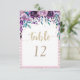 Cartão de Número da Mesa de Champanhe Floral Roxo