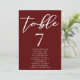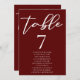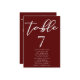 Cartão de Número da Tabela de Casamento Burgundy E