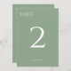 Chic e elegante. Estas placas de números de tabela apresentam um conjunto contemporâneo de fontes em branco, contra um fundo verde de sábio. São incluídos um número de tabela e nomes de casais. Edite cada cartão individualmente com o número e adicione ao carrinho. Projetado para coordenar com outros itens na coleção. A coleção de casamento de cheios pode ser vista aqui: https://www.zazzle.com/collections/modern_chic_script_wedding_collection-119480419775094242