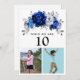 Cartão de número de mesa com tema azul real branco e prata elegante, apresentando um buquê elegante de flores de rosa azul real, azul-marinho, prata, branco puro e folhas de eucalipto verde-sage. Por favor, entre em contato comigo para qualquer ajuda na personalização ou se você precisar de qualquer outro produto com este design.