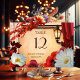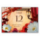 Cartão de número de mesa com um design romântico com flores de anêmona e gérbera margarida em um estilo clássico italiano ou mediterrâneo inspirado, com folhas de outono coloridas e luz de lanterna quente. Embora preparado para um casamento, este cartão pode ser usado para qualquer celebração de outono, como um aniversário, aposentadoria ou Dia de Ação de Graças ...