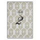 Cartão de número de mesa com lindo padrão de impressão em bloco bege e branco. Frente e verso.