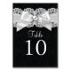 Cartão de Número de Mesa de Casamento Preto e Branco. Design elegante de laço com pérolas. Por favor, note que todas as imagens planas! Elas não têm laços reais!