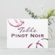 Uma mancha de vinho borgonha espalhada e caligrafia fluida trazem o caráter de vinhedos a este cartão de número de mesa de casamento, onde as mesas são identificadas por nomes de variedades de vinho em vez de números. Um dos mais vendidos para celebrações de vinícolas e vinhas, este design divertido transforma cada mesa em uma experiência de degustação de vinho. O nome do vinho e todo o texto são fáceis de personalizar. Cada cartão de mesa deve ser personalizado individualmente e adicionado ao carrinho um de cada vez.