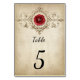Cartão de Número de Mesa com Rosa Vermelha Antiga
