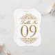 Cartão de Número de Mesa de Casamento com Efeito de Brilho Dourado (09)