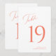 Guie seus convidados com estilo com este elegante cartão de número de mesa de casamento, apresentando um moderno script coral e um design serif limpo. O layout minimalista adiciona um toque de sofisticação, enquanto o fundo branco suave garante uma fácil leitura. Ideal para casamentos, recepções ou eventos formais, este cartão de número de mesa combina elegância clássica com charme contemporâneo. Personalize com os números das suas mesas e faça da sua celebração algo verdadeiramente harmonioso e lindo.