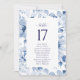 Cartão de Número de Mesa de Casamento Floral Azul