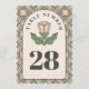 Complete seus arranjos de mesa de recepção com esses elegantes números de mesa em estilo Art Nouveau. Com um clássico arco floral em verde-sage e rosa poeirento, esses cartões de dupla face garantem que seus convidados encontrem seus lugares com facilidade. A rosa botânica atemporal e a borda inspirada em vintage criam um visual sofisticado que complementa qualquer decoração de casamento de jardim ou boho-chic.