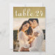 A textura quente de brilho dourado e a caligrafia fluida enquadram sua foto favorita neste cartão de número de mesa de casamento glamoroso. Os tons metálicos ricos e a escrita elegante criam um visual luxuoso para as mesas de recepção. Para personalizar, digite o número da mesa, clique em Alterar ao lado da foto padrão para carregar a sua, e adicione esse cartão de número de mesa individual ao seu carrinho de compras. Repita para todos os números de mesa que você precisar.