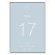 Esta simples, minimalista e moderna carta de números da mesa de casamento apresenta um monograma com inscrições modernas em branco sobre um fundo azul empoeirado. Altere a cor de fundo e personalize-a para as suas necessidades. Você pode encontrar produtos correspondentes na minha loja.