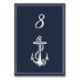 Cartão de mesa de casamento elegante e simples, com âncora náutica e design de texto simples. Esta design é uma escolha única para um casamento moderno. Fácil de personalizar com o(s) número(s) de tabela apropriado(s). Clique em "Personalizar" para encontrar mais opções de personalização.