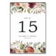Os cartões elegantes e russos de números de mesas apresentam as bordas superior e inferior de rosa de aquarelas e flores mães em tons de marsala, burgundy, rosa-pincel e marfim com folhagem verde. O número da tabela, a data do evento e o texto personalizado adicional são exibidos no centro. Design repete-se no lado oposto. Coordena-se com a nossa suíte de convite para casamento floral Rustic Bloom elegante para outono ou casamentos no inverno.