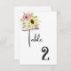 Esta carta de número da mesa de casamento é mostrada no papel de cartão matte com um layout moderno e flores adoráveis. Texto branco colorido em preto. Personalize este item e altere o número para o que você precisa ou o comprar como está. Imagem do stock freepik.com