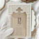 Coloque um tom real na sua recepção de casamento com esta luxuosa placa de números de tabela, inspirada pela intrincada artista do design Árabe. A carta exibe um elaborado arco de marfim com padrões giratórios que lembram a arte tradicional do Oriente Médio, contra uma rica canvas esticada. A atração principal, um grande número de tabela, é exibida em uma fonte espresso profunda que é ousada e elegante. Flanqueando o arco são duas colunas clássicas adornadas com um padrão de eringe óssea em tons de marfim e bege, oferecendo um sutil contraste para o plano de fundo liso. Este cartão não serve apenas como um guia prático para os seus convidados, mas também como uma peça de arte que enriquece o cenário da mesa com sua beleza cultural e seu esquema de cores neutras.