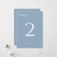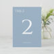 Chic e elegante. Essas placas de números de tabela apresentam um conjunto contemporâneo de fontes em branco, contra um fundo azul empoeirado. São incluídos um número de tabela e nomes de casais. Edite cada cartão individualmente com o número e adicione ao carrinho. Projetado para coordenar com outros itens na coleção. A coleção de casamento de cheios pode ser vista aqui: https://www.zazzle.com/collections/modern_chic_script_wedding_collection-119480419775094242