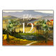 Cartão numérico da tabela de casamento com uma pintura de uma paisagem italiana tucana. Uma paisagem colorido com verde fresco.
