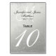 Foto impressa Foil prateada Cartões de Número de Tabela de Casamento com monograma personalizado. Design por Elke Clarke ©. Personalize com seus nomes de noiva e noivo, sobrenome de recém-casados, data inicial do monograma e do casamento. Encomende um por mesa com cada número de tabela, mas ainda recebe o desconto em massa para o número total solicitado. Outras cores disponíveis