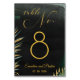 INSTRUÇÕES DE CARTÕES DE mesa: Crie uma placa de número de tabela, para cada mesa, uma de cada vez, e adicione-a ao carrinho, uma de cada vez. Faça isso para quantas placas de mesa forem necessárias. Edite o número da tabela abaixo (ele atualiza ambos os lados) e coloque-o no carrinho. Para voltar a esta página de produto do seu carrinho, clique no link de nome de produto azul para continuar a adicionar placas ao carrinho. Precisa de ajuda? Me mande uma mensagem ou me mande um bate-papo. Um elegante convite de casamento tropical pintado por aquarela com um dramático pano de fundo preto de lavagem a aquarela com folhas de palma verdes, pintadas de forma elegante, e sotaque de ouro. Uma caligrafia viva de guião de ouro anuncia seus detalhes de casamento.