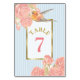 Cartão de Número de Mesa do Casamento de Pássaros Vintage, de cor azul, rosa e branca