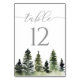 Ajude seus hóspedes a encontrar seu lugar na sua recepção de casamento com esta simples e elegante placa de números de tabela, com pinheiros aquarelas e tipografia de cinzas quentes.