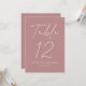 Cartões simples e modernos de números da mesa de casamento, com "Mesa", mostrados em um roteiro branco manuscrito com fundo rosa empoeirado (ou uma cor de sua escolha). Para pedir os cartões de mesa de casamento empoeirados: adicione seu nome, data de casamento e número da mesa. Cada número precisa ser adicionado ao seu carrinho individualmente. Depois de terminar de adicionar cada número de tabela ao seu carrinho, basta fazer check-out e esperar que suas lindas placas de números de tabela cheguem!