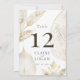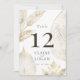 Esta delicada e elegante carta de números da mesa de casamento apresenta um fundo branco com folhas em folha falsa/falsa de ouro. Personalize-o para as suas necessidades. Você pode encontrar produtos correspondentes na minha loja.