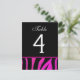 Certifique-se de que seus hóspedes vão até suas mesas com estes elegantes cartões de mesa de casamento rosa e zebra preta. O tamanho é 4,25 x 5,6" e terá um acabamento brilhante. Precisará de porteiros para que as cartas fiquem na sua mesa. Uma seleção de itens correspondentes é mostrada abaixo.