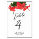 Cartão de Número de Tabela de Casamento com Flor Vermelho Brilhante