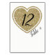 Placa de número de tabela de recepção de casamento minimalista feita em branco, com gráficos de um coração dourado. Personalize o número preto para cada mesa na sua recepção. Corresponde que o nosso Amor está no jogo de casamento do Air.