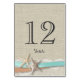 Burlap russo e local com fita aqua e pêssego e design estelar impressa, placa de número de tabela para elogiar nosso conjunto de temas de praia, podem ser personalizados e encomendados individualmente. Design impressa, não há nenhuma braçadeira real, rendas ou fita conectada.