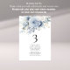 Cartão de Número da Tabela do Gráfico de Nomes de Florais Azuis Edite o número de cada mesa e adicione-o separadamente ao carrinho. O mesmo design está em ambos os lados, use um monitor suspenso para que os convidados possam encontrar seu assento ou exibição em cada mesa. Belos florais azuis empoeirados estão no topo. Personalize facilmente o número da tabela e seus nomes de convidado. O mesmo design está em ambos os lados e será atualizado simultaneamente à medida que você muda as palavras para as suas.