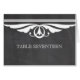 Número da Tabela Deco Chalkboard Elegante e chic com uma placa com textura de quadro chalkboard em moda e um par de bordas giratórias deco marfim. Esta bela carta de mesa é perfeita para um casamento temático de arte deco de 1920. Fácil de personalizar, basta adicionar o(s) número(s) de tabela apropriado(s) no campo de texto fornecido. Clique em "Personalizar" para encontrar opções adicionais de personalização.