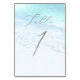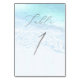 Cartão de números de mesa da PixDezines, litoral azul cristalino, com caligrafia luxuosa e numeração personalizada da mesma família de fontes 1+... basta ativar o ícone do olho para utilizar as camadas invisíveis.