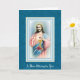 Esta é uma bela imagem tradicional do Sagrado Coração de Jesus com um fundo de damasco azul. Um cartão de missa (também conhecido como cartão de oferta de missa, cartão memorial ou cartão de lembrança), é um cartão de saudação dado a alguém para que saiba que ele, ou um ente querido falecido, será lembrado e rezado nas intenções na Santa Missa.