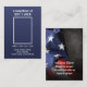 Cartão de oração memorial de funeral azul com sua foto favorita em moldura. Tipografia moderna é usada. No verso do cartão há texto adicional que pode ser personalizado sobrepondo a bandeira dos EUA.