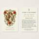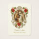 Com uma bela imagem católica tradicional do Espousal da Bem-Aventurada Virgem Maria e São José com poinsettias vermelhas. Uma oração está no verso para os noivos. Todo o texto e fontes podem ser modificados.