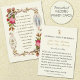 Com uma bela imagem católica tradicional da Bem-Aventurada Virgem Maria, Nossa Senhora da Graça no Medalha Milagrosa com rosas cor-de-rosa e o versículo da Escritura de 1 Coríntios. Uma oração está no verso para os noivos.