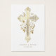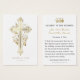 Nossos cartões de oração católicos de casamento apresentam uma bela imagem católica tradicional de uma cruz de ouro decorativa com rosas brancas. Uma oração está atrás da noiva e do noivo. Todo texto e fontes podem ser modificados.