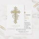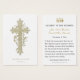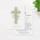 Apresentando uma bela imagem católica tradicional uma Cruz Dourada com dois anéis de casamento de ouro e os corações de Jesus, Maria e José no topo das costas. Uma oração também está nas costas para a noiva e o noivo. Todo texto e fontes podem ser modificados.